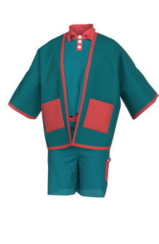This was an Illustrator flat sketch I built upon. It's a pair of pants and a half zipper jacket. The designs and cutouts within the pattern elevate the designs from simple to more complex and gives it a unique organic feel, While the color schemes explored giving the pants and jacket a different feeling or aesthetic through only altering the color scheme. Followed by rendering and creating the pattern in CLO3D.