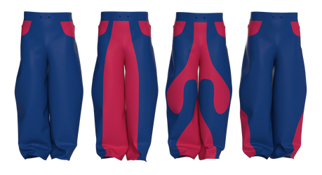 CLO3D was were I started to design the patterns and looks as a collection. It helped me develop and experiment with different curves and form factors for the outer seam of the pants. It also allowed me to develop a good rise seam for comfortability and further understand pattern making.